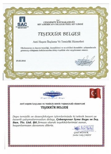 ISO 9001 OHSAS Hizmet Yeterlilik Belgesi İstanbul Valiliği İzin Belgesi İl Sağlık Müdürlüğü Sağlık Bakanlığı Teşekkür Belgesi Ticaret Odası